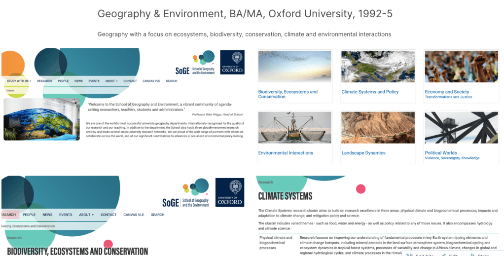 A year later, in 1992, I started my university degree at Oxford’s School of Geography and the Environment. It was here that I studied topics such as natural ecosystems, biogeography, conservation, climate and environmental interactions.