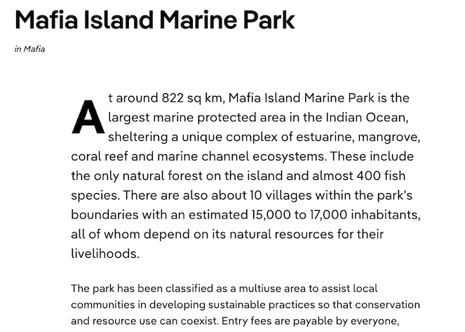 In my early twenties, I worked as an environmental research coordinator on marine biological expeditions to the islands and coral reefs of East Africa. Through a British organisation called The Society for Environmental Exploration, we received and trained volunteers to help conduct ecological surveys of the underwater world, coastal habitats and local fishing communities. Our reports for environmental organisations and national ministries went towards the creation and management of Mafia Island Marine Park in Tanzania and the Quirimbas National Park in Mozambique.